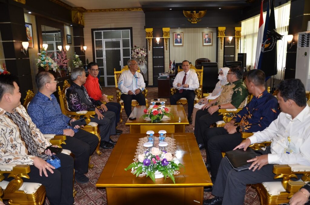 In a momentous meeting held on July 13th, 2023, the Rector of Universitas Tanjungpura (Prof. Garuda Wiko) and the Vice Chancellor of UNIMAS Global (Prof. Datuk Dr. Mohamad Kadim Suaidi) accompanied by their respective teams, gathered at the scenic campus of Universitas Tanjungpura in Pontianak, Indonesia. The primary objective of the visit was to deliberate on potential avenues for collaboration in critical areas such as energy, health, and food resilience.
