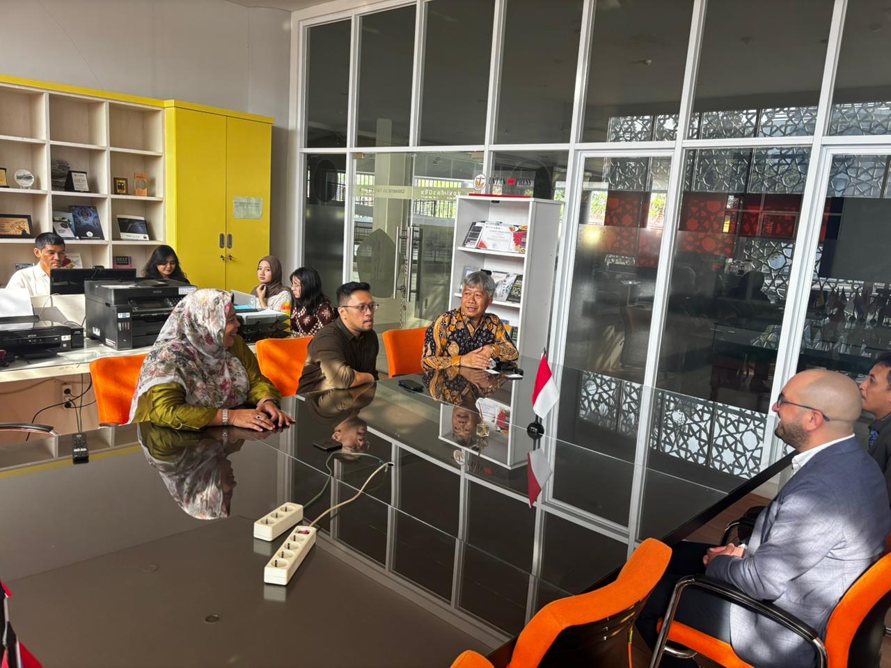 The meeting was attended by Prof. Zairin Zain, Head of the International Affairs Office UNTAN; Stella Fransiska, M.Pd, Head of UPA Bahasa UNTAN; Dr. Apt. Hariyanto IH, M.Si, Director of Kedai Perancis UNTAN; Rahmat Putra Yudha, M.Pd TESOL, EU Project Coordinator; and Yassine Zarouk, Head of Ocean Network from Morocco.